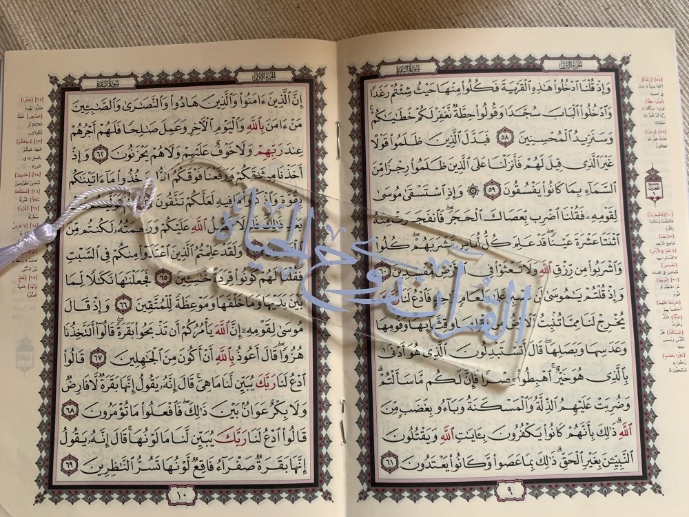 فاصل قران إكريليك مع عبارة القران روح الحياه مع حامل للفاصل فاص تختيم القران من الورق يأتي مع حامل ورق